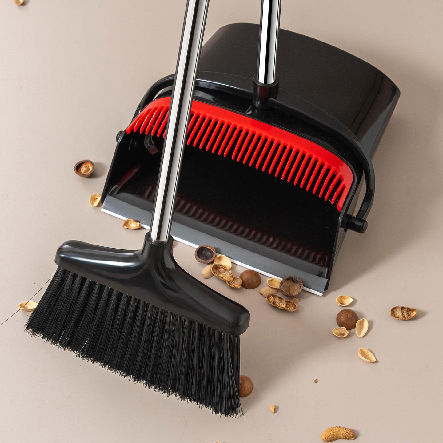Limpieza sin agacharse: escoba y recogedor, mangos ajustables con espacio para variedad según sus necesidades, ofrecen un barrido cómodo sin tener que agacharse. Construcción robusta y material resistente al óxido. Mejora de las cerdas de escoba de alta resistencia: el juego combinado de escoba con recogedor está hecho de cerdas de alta calidad/suaves y resistentes que pueden agarrar eficazmente el polvo y la suciedad, cabezal de escoba de tamaño completo y recogedor de gran capacidad, perfecto para barrer áreas grandes. Dientes del recogedor: el recogedor integrado con dientes de peine es fácil de raspar el cabello y la basura de las cerdas de la escoba en el recogedor, eliminando la necesidad de arrastrar con la mano, haciendo que la escoba y El recogedor es más fácil de limpiar. Fácil almacenamiento de pie: ¡la función de clip hace que la escoba y el recogedor en posición vertical sean un espacio perfecto y más seguro! El almacenamiento compacto mantiene su hogar o espacio de trabajo limpio y ordenado. Funciona perfectamente para múltiples superficies, adecuado para uso en interiores. Las cerdas más rígidas y los bordes de goma en el recogedor extendido evitan que el polvo se resbale. Las escobas de mano destacan en superficies de azulejos y proporcionan un rendimiento de limpieza superior. Un peine con dientes más finos ayuda a capturar residuos más pequeños y eliminar el pelo de las mascotas de pisos y mesas, lo que hace que el proceso de limpieza sea más eficiente.