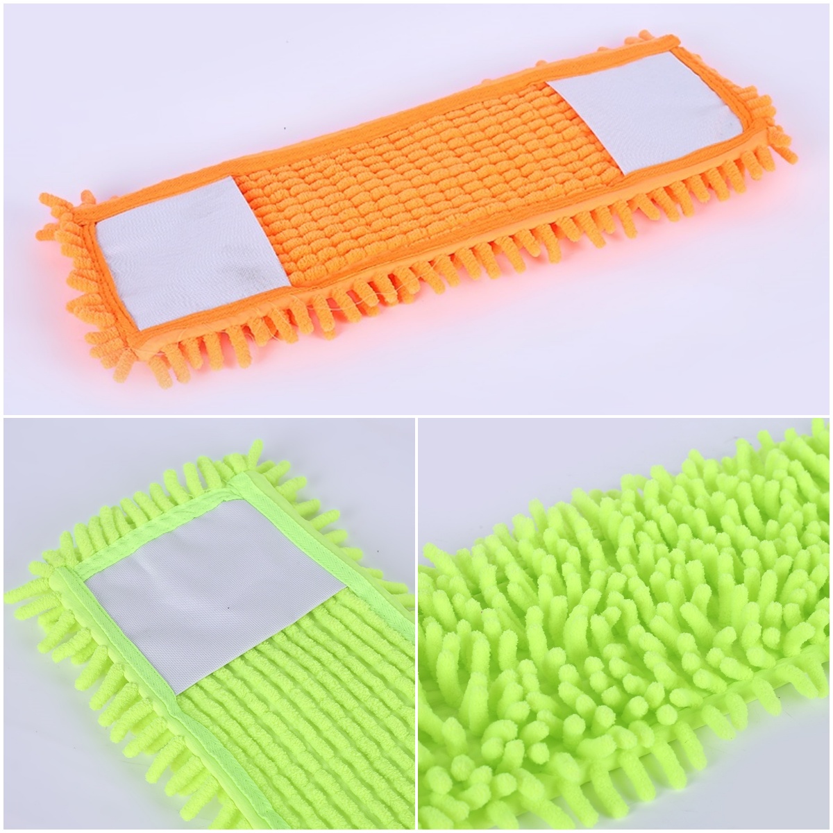 Chenille: este trapeador de polvo para las almohadillas de piso es reutilizable y absorbente, mientras que las almohadillas de reemplazo de microfibra de poliéster tienen una fuerte capacidad de limpieza para eliminar de manera efectiva las manchas de las baldosas y otras grietas de piso, perfectas para trapas húmedas y barridos secos